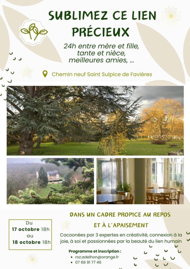 Vous savez que le lien, et la joie sont très importants pour moi. Ces derniers temps, j’ai particulièrement travaillé la joie dans ma vie Sandrine Clain m’a particulièrement aidé dans cet axe et elle incarne un des très beau lien pour moi dans ma vie et c’est donc tout naturellement que nous avons eu très envie de créer une journée hors du temps pour sublimer un lien dans votre vie. Nous avons souhaité y ajouter un lieu d’exception, il s’agit de Communauté du Chemin Neuf à Saint Sulpice de Favières.