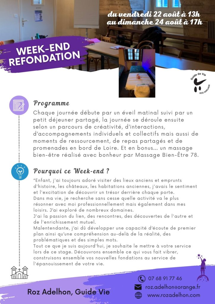 Reposer les bases de votre vie sur 2 jours et demi du vendredi 22 août après-midi au dimanche 24 août 2025 au soir.